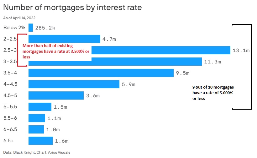 Today 95% of homeowners have fixed rate mortgages (so there won’t be any payment shock like during the teaser rate days), and nine out of ten of them have rates below 5%.