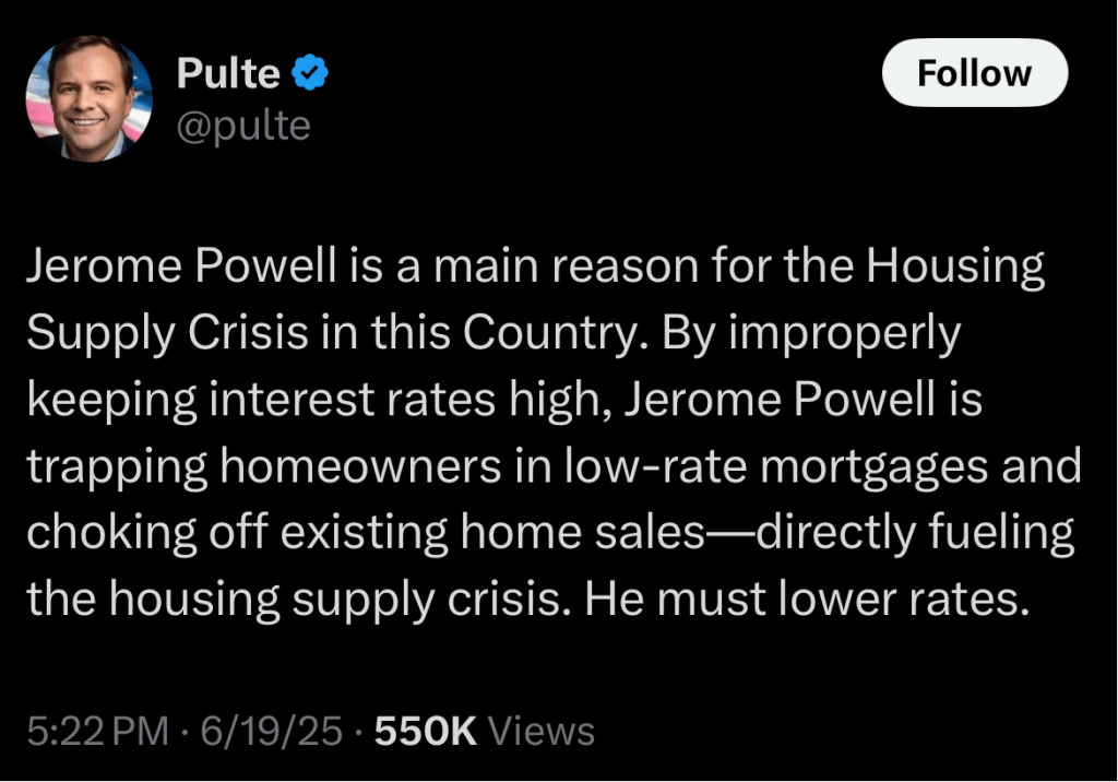 - None of this has stopped Bill Pulte from beating the drum of “the Fed needing to cut mortgage rates” and he should know better…but ya know…refer back to the opening quote of this post;
